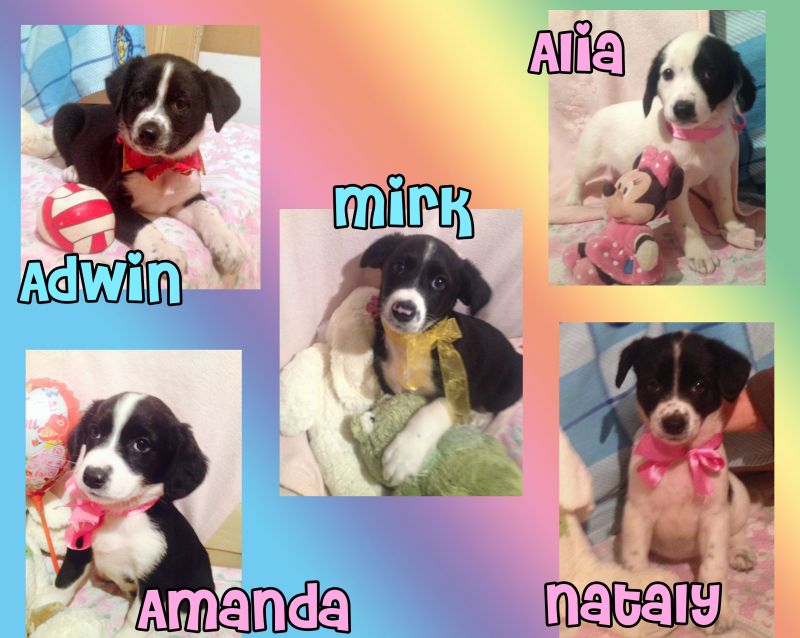 Loro sono NATALY, ALIA le femmine - MIRK e ADWIN i maschi (Amanda è stata già adottata), 4 cuccioli di meno di 3 mesi nati il 25/11/2017, futura taglia media/media contenuta (la mamma pesa 14 kg ed è visibile tra le foto), per i quali una signora ci ha chiesto aiuto per trovare loro delle belle adozioni. Sono stati trovati in un burrone, erano in pericolo di vita e così i pompieri sono intervenuti e li hanno affidati alla signora che se ne sta occupando tutt'ora. La mamma verrà sterilizzata appena possibile e per fortuna ha già adozione. Saranno affidati sverminati, vaccinati, microchippati e trattati con antiparassitario. Cerca il sito dell'associazione Trovatelli4000 per vedere tutte le foto e i video dei cagnolini in cerca di adozione. Si trova in provincia di Napoli, ma è adottabile in Campania e in tutto il centro e nord Italia, da persone disponibili a controlli pre e post affido e alla firma del regolare modulo di adozione rilasciato dall'associazione.