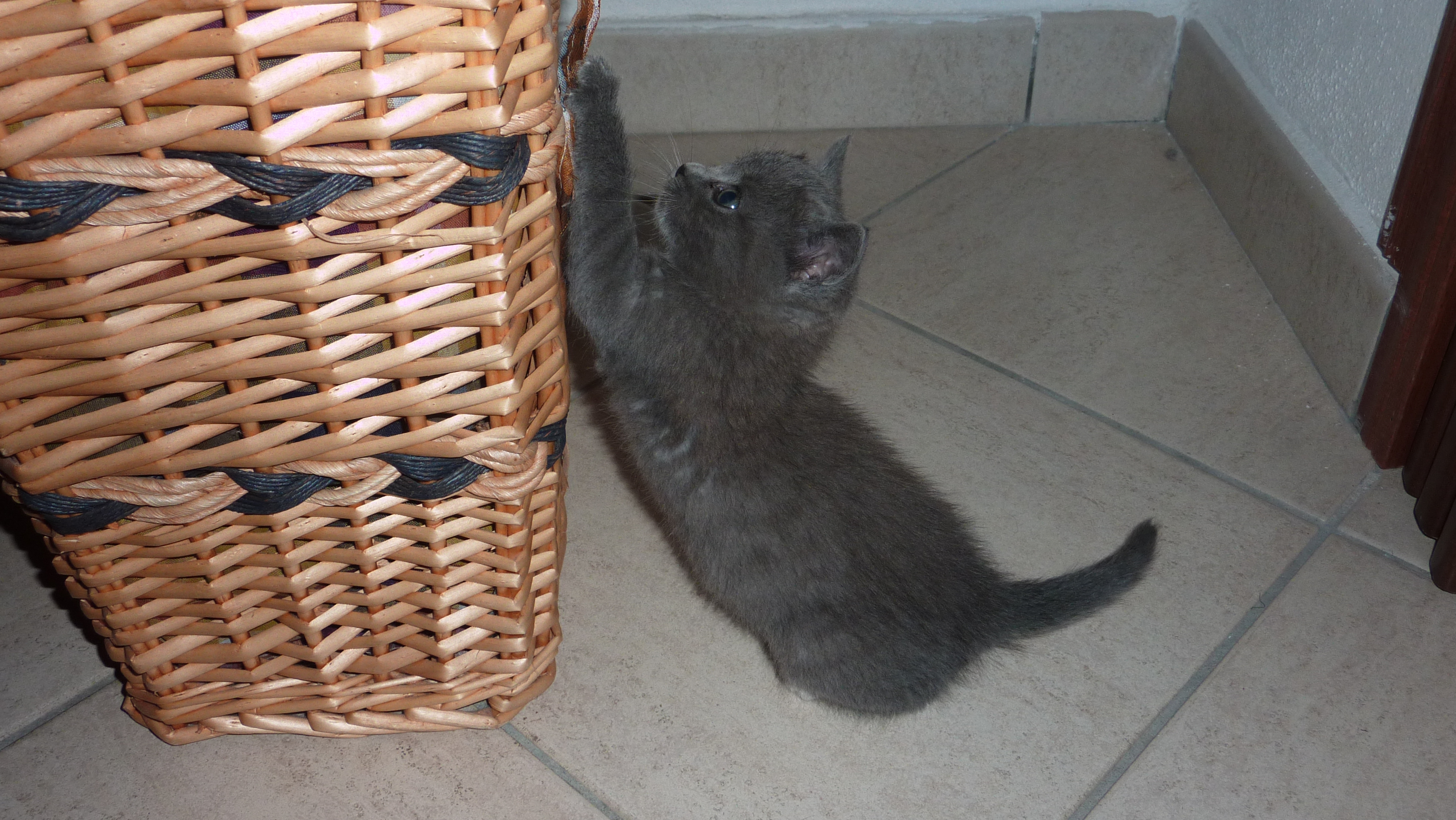 Che carina la tua Dafne, usa la cesta come tiragraffi :-D Anche il mio Leo fa così :-D