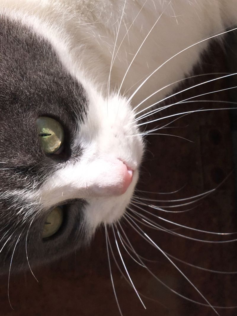 Carolina è pezzata colori bianco e grigio è veramente carina, dimensioni piccole , nonostante abbia già 7 anni ,un pò scontrosa di carattere