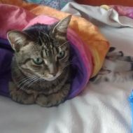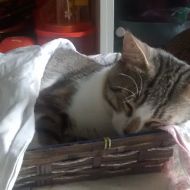 Oramai il cestino del pane è diventato il suo lettino! Guai a chi lo tocca!