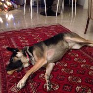 Faccia di Lucky che a appena mangiato