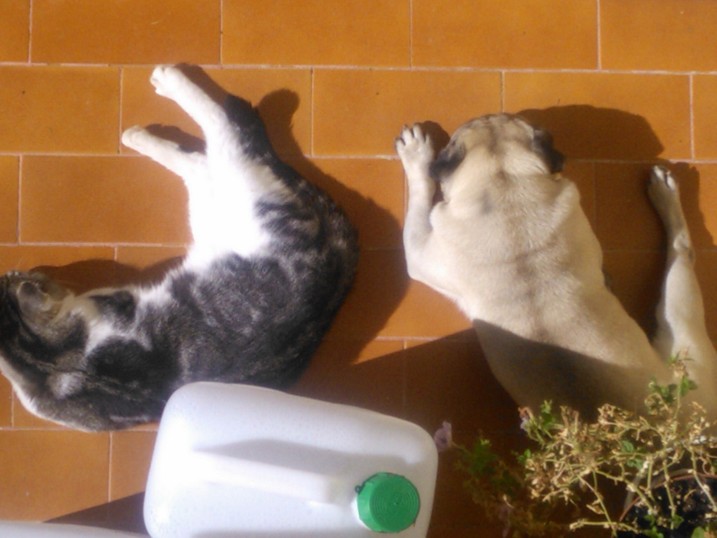 DescrizioneIl mio cane Bruto è talmente pigro che ignora persino la vicinanza del suo più acerrimo nemico Gaga'.