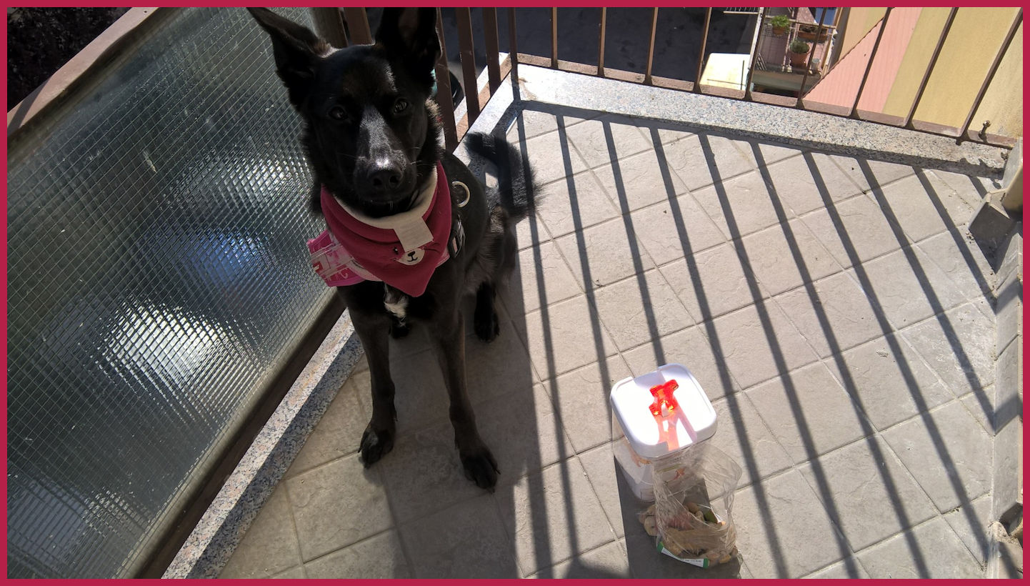 will sul balcone, nella scatola ci sono biscotti Friskies.volevo dire nel sacchetto.