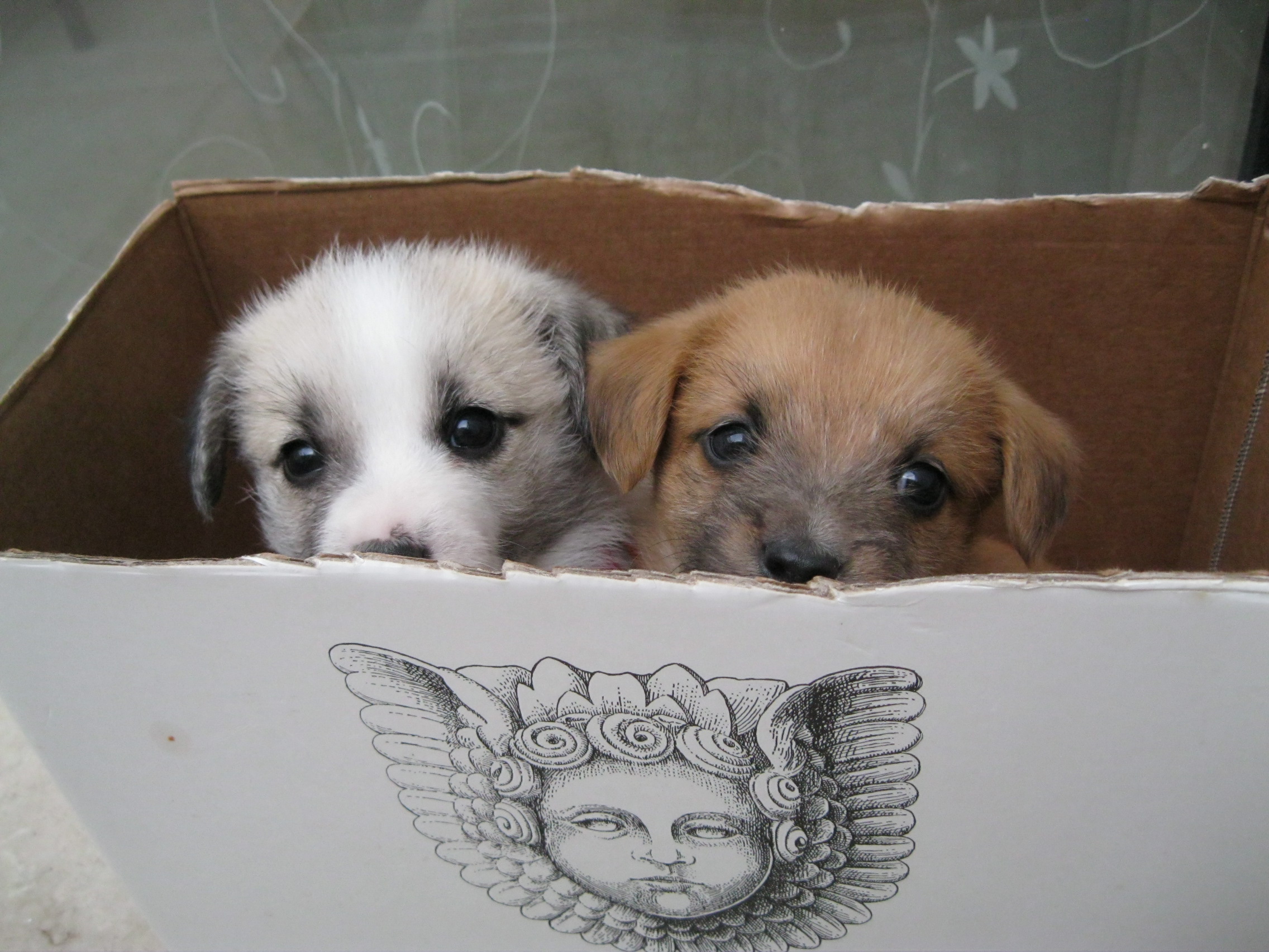 DescrizioneChicco e Sissy fanno capolino dalla scatola del vinello dopo essersi nascosti dalle tantissime attenzioni della mamma.