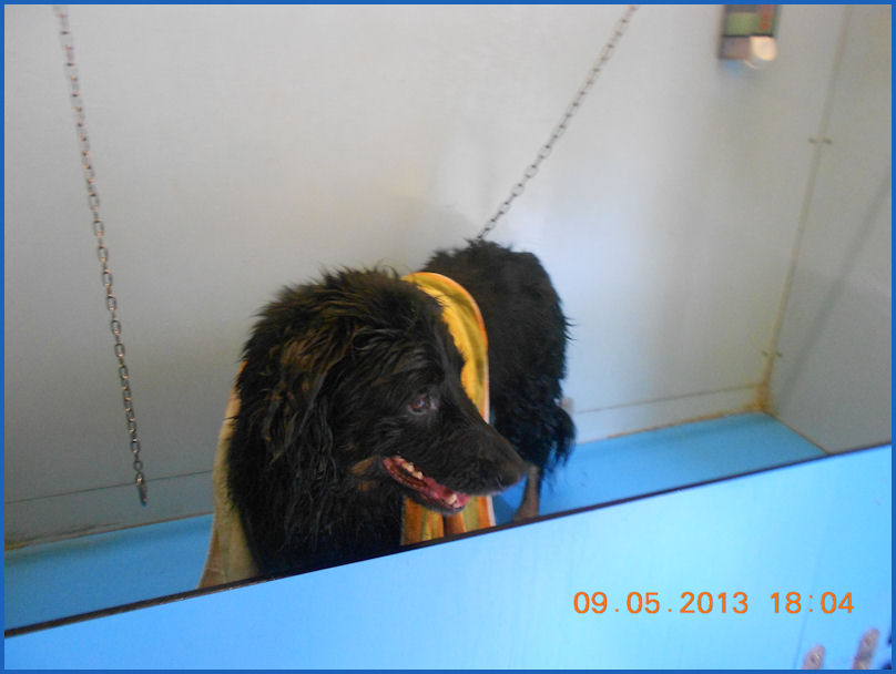DescrizioneEcco la mia cagnolona mentre viene lavata. Lei adora l'acqua.
