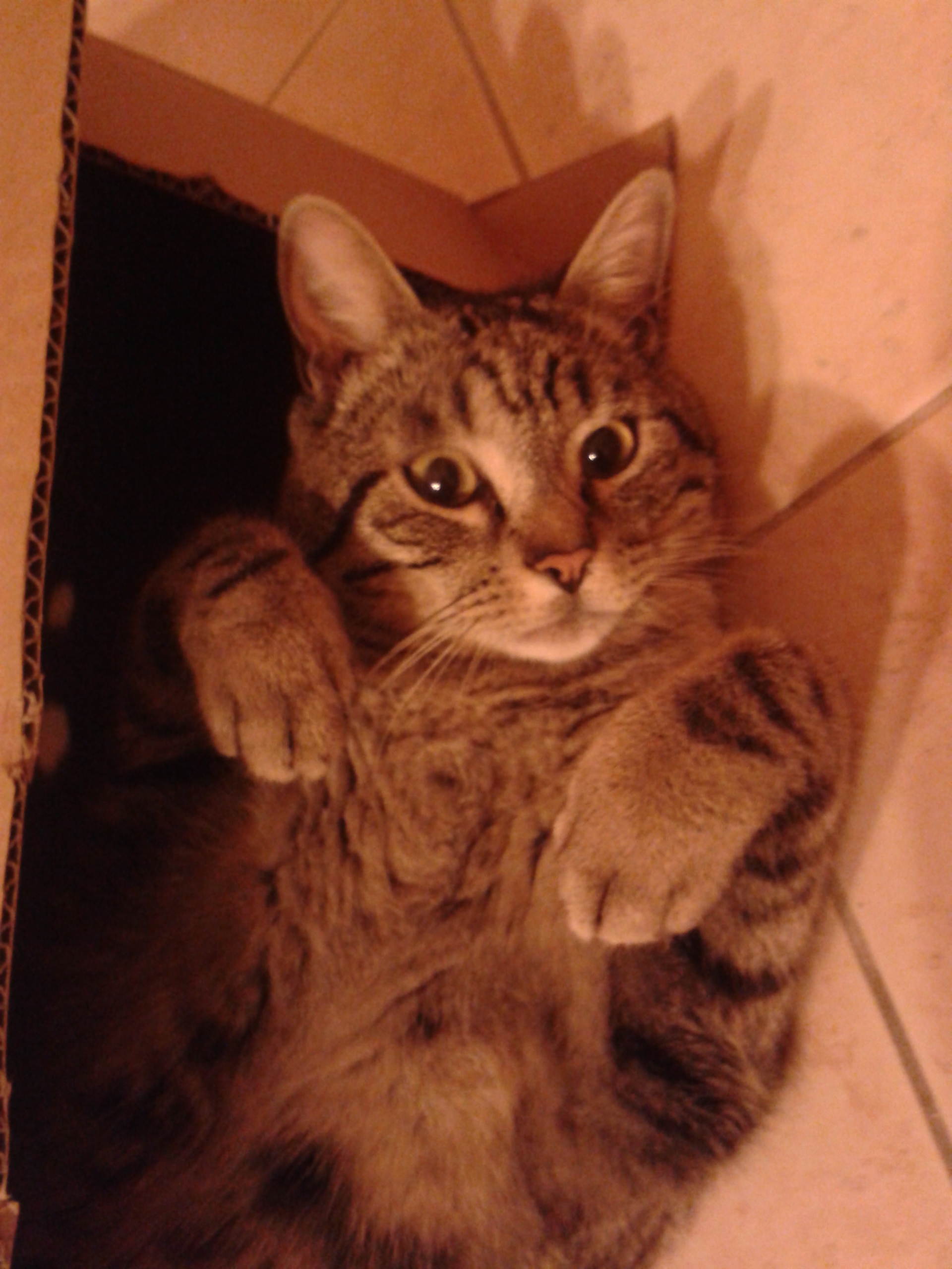 Descrizionetigro non smetterebbe mai di giocare a nascondino, adora le scatole e ci si butta dentro come un razzo