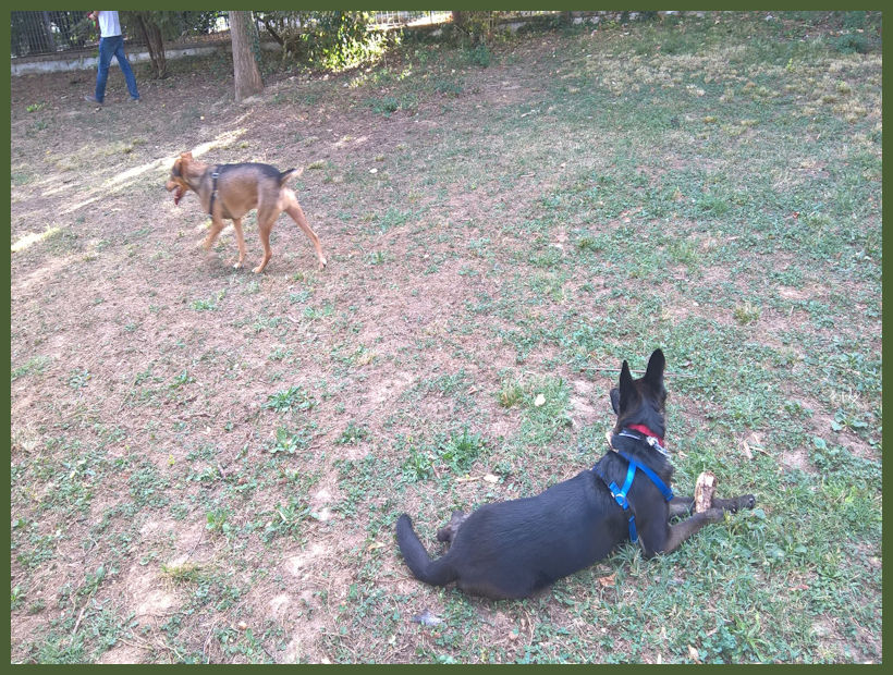 DescrizioneQua Will è indecisa se continuare a giocare con il legnetto o se andare a giocare con il bau.