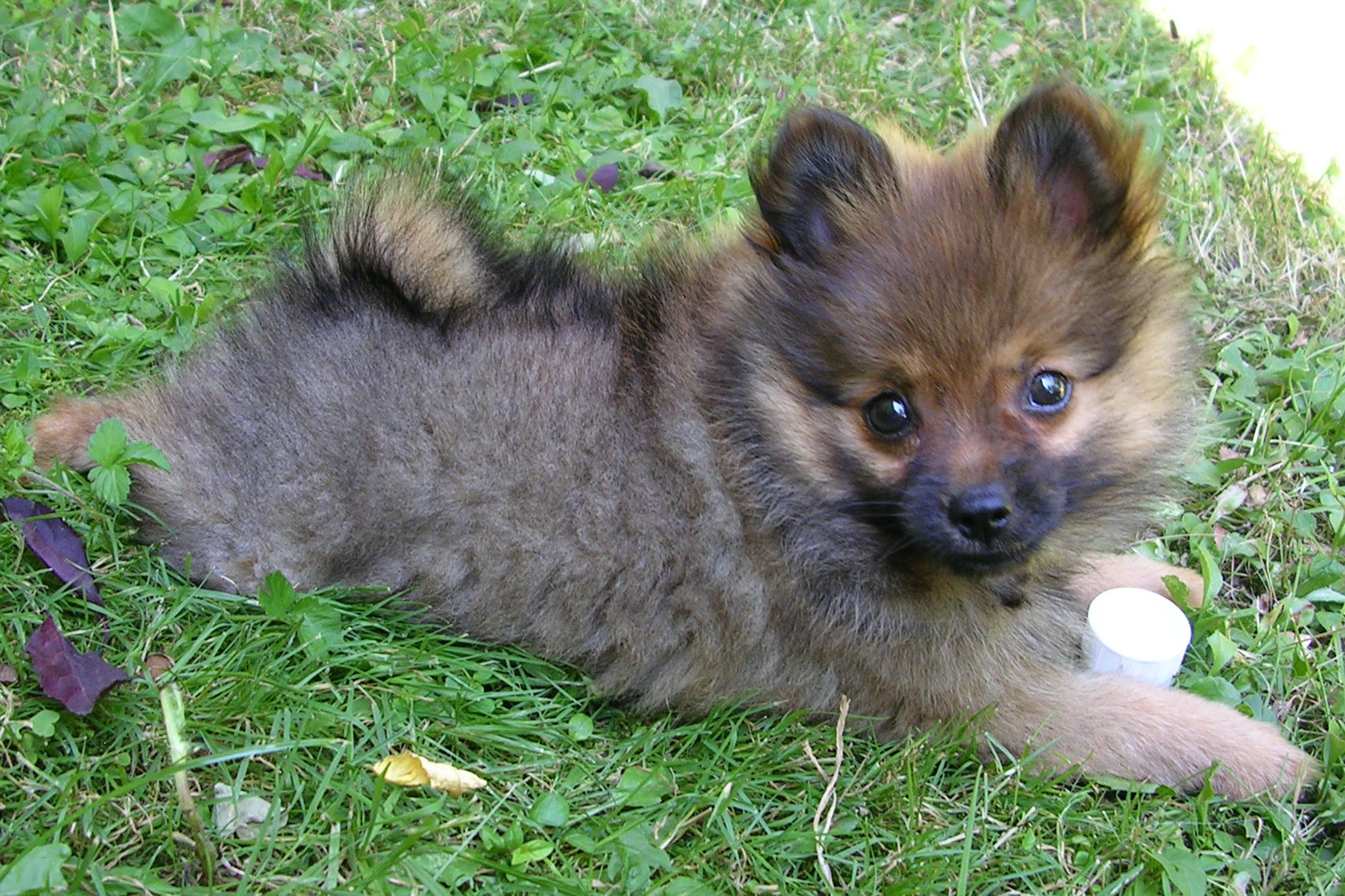 La piccola Micra gioca in giardino