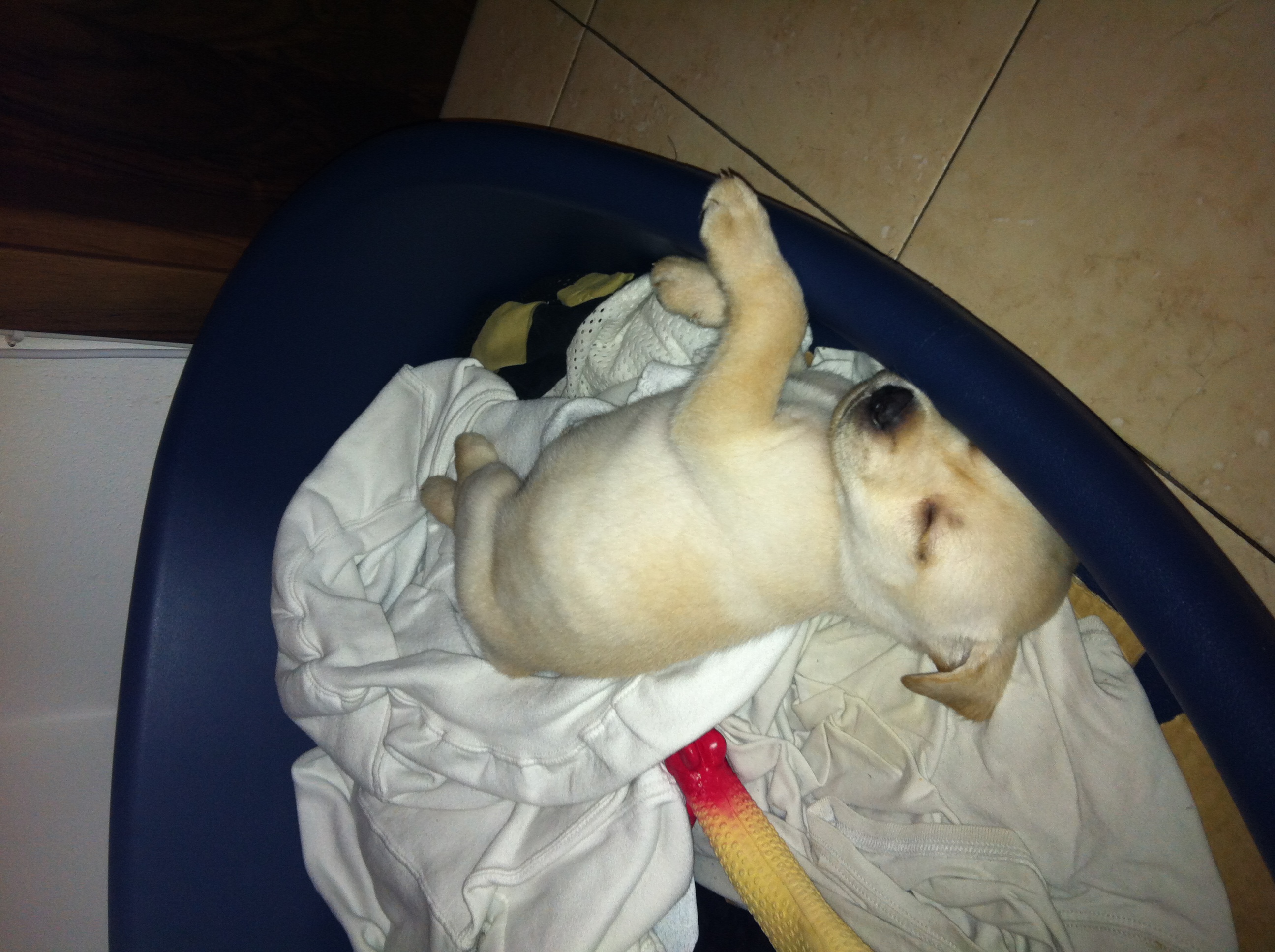 Il piccolo Ettore dorme accanto all'amico Pollo, all'epoca molto più grande di lui!
