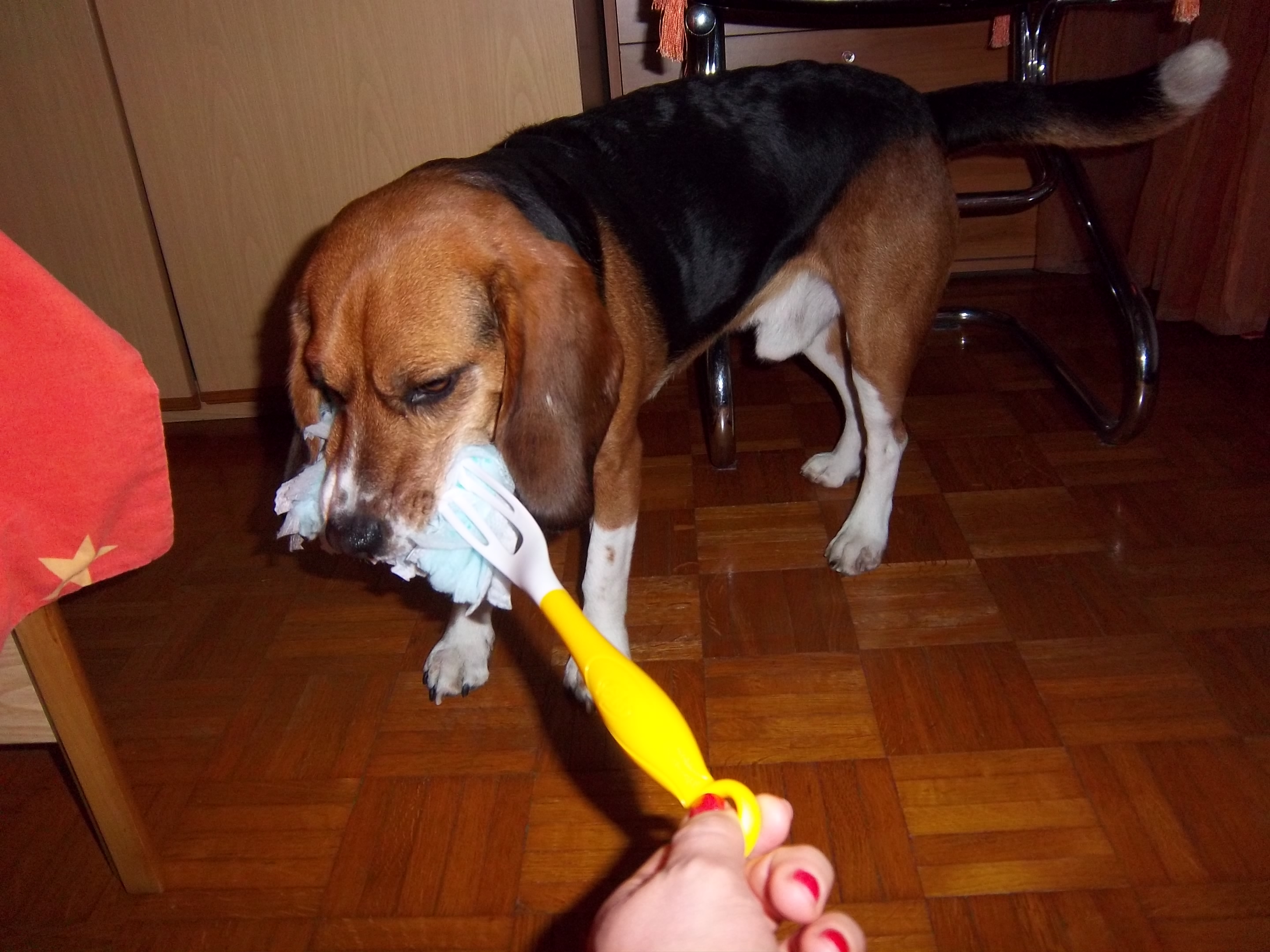 Descrizionelinus alle prese con il panno...vuole fare le pulizie!!