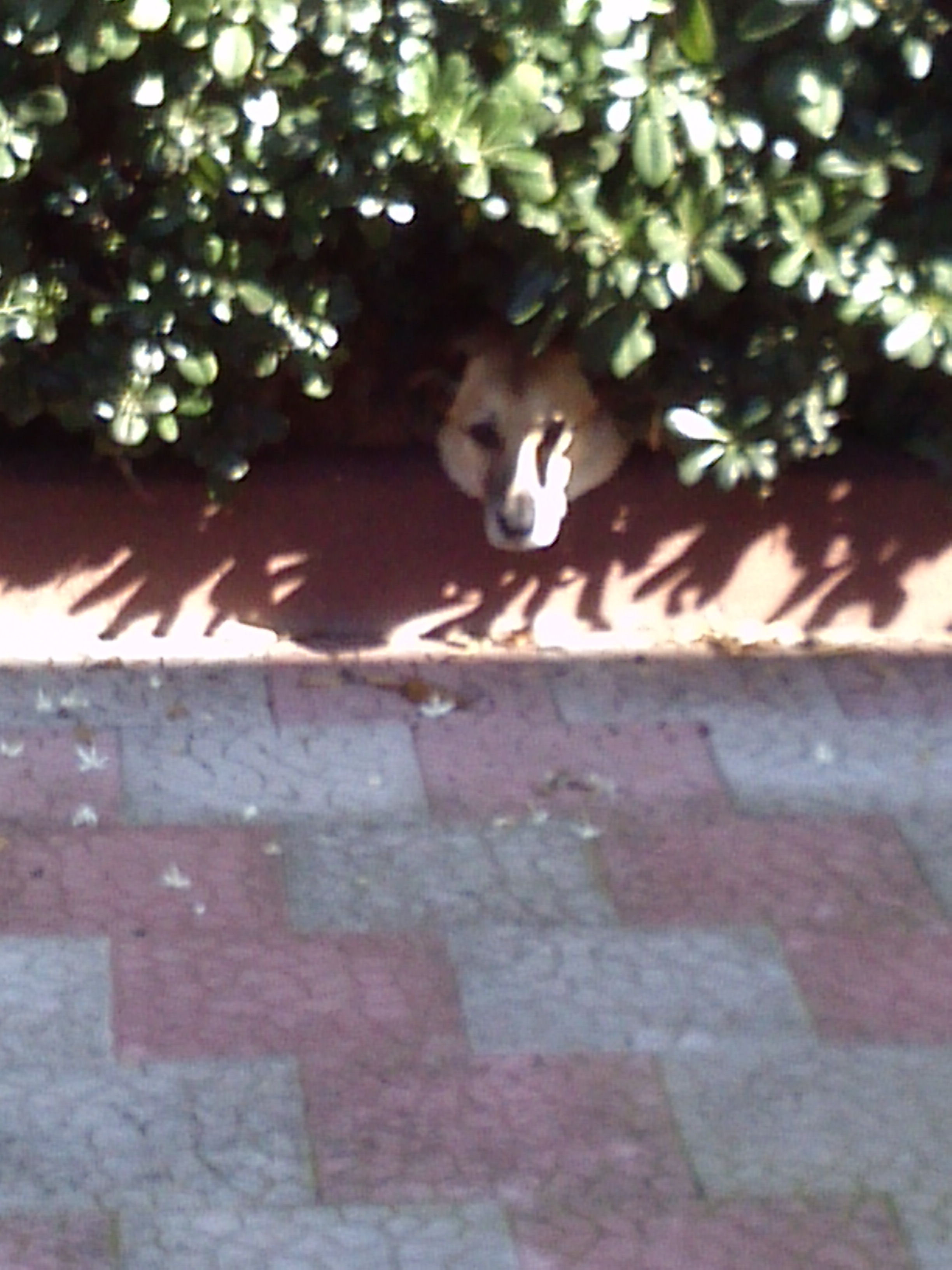 DescrizioneLuna si nasconde nella siepe perchè non vuol fare il bagnetto.