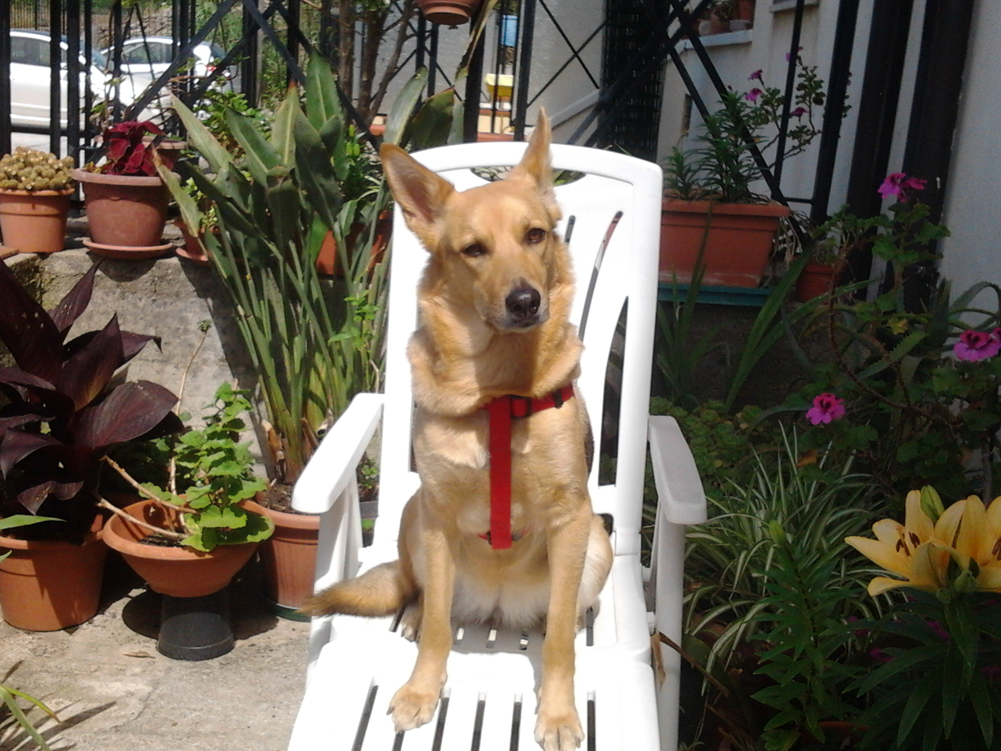 DescrizioneManta che si prende il sole sopra la sedia sdraio