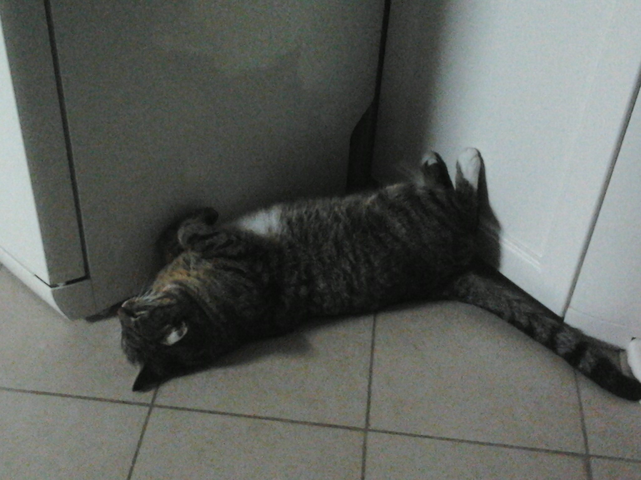 Notare la posizione..sdariato...e attaccato al frigorifero...eheheh..come me,, è un golosone....e quando è tanto stanco, fa la nanna!!