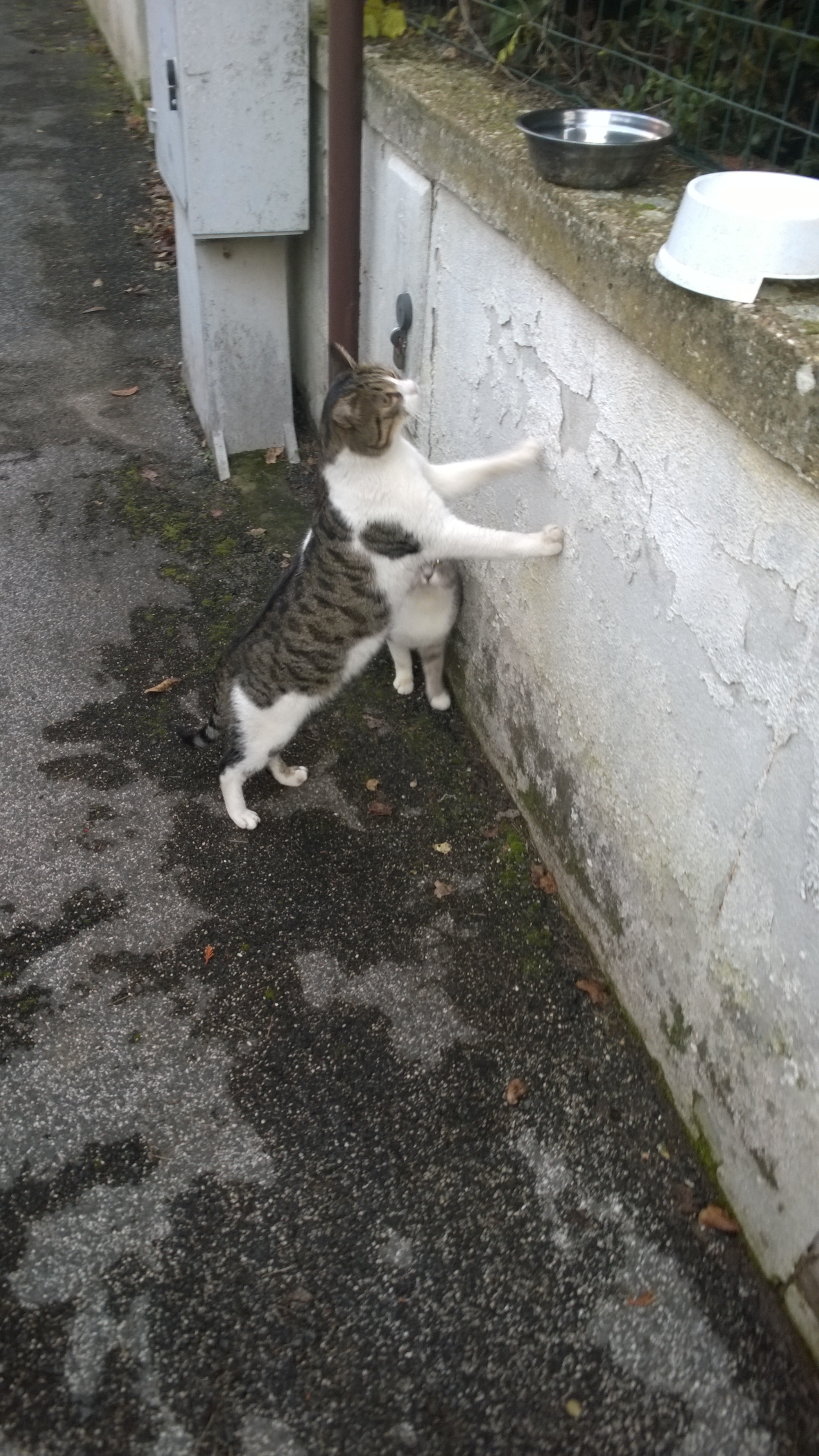 Mi arrampico sul muro.