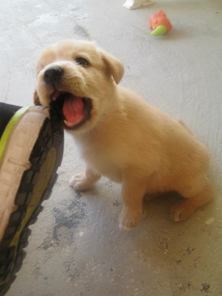 DescrizioneMentre mangiucchia le scarpe di mio fratello
