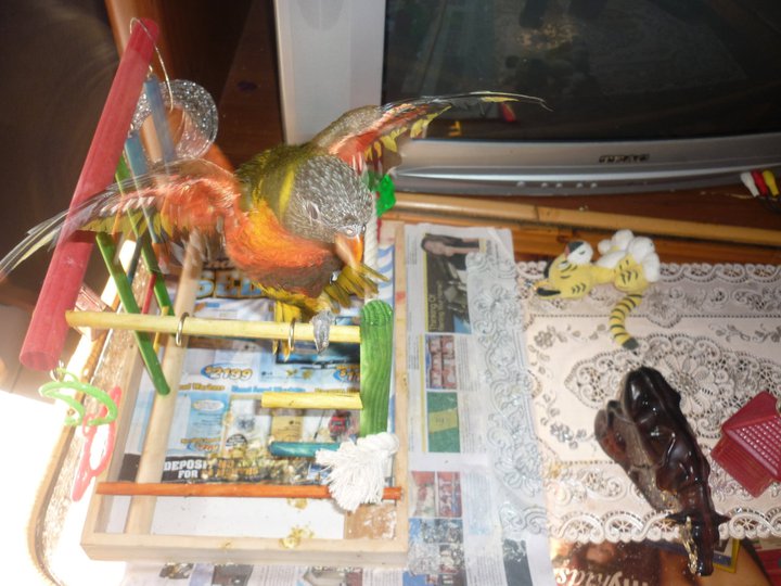 oli sul suo mini trespolo