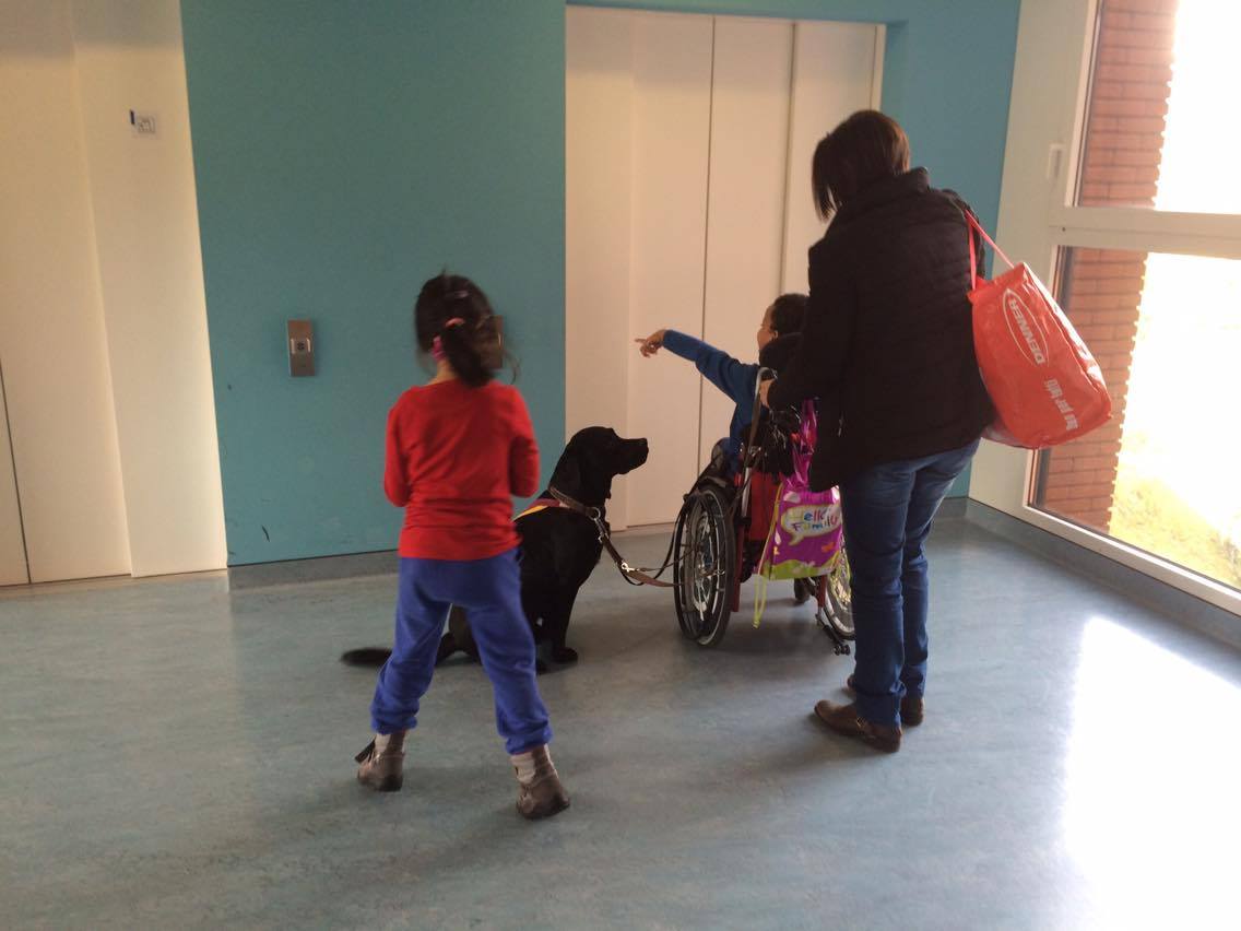 DescrizionePeter Pan, labrador retriever, durante la seduta di Pet Therapy con i bambini...