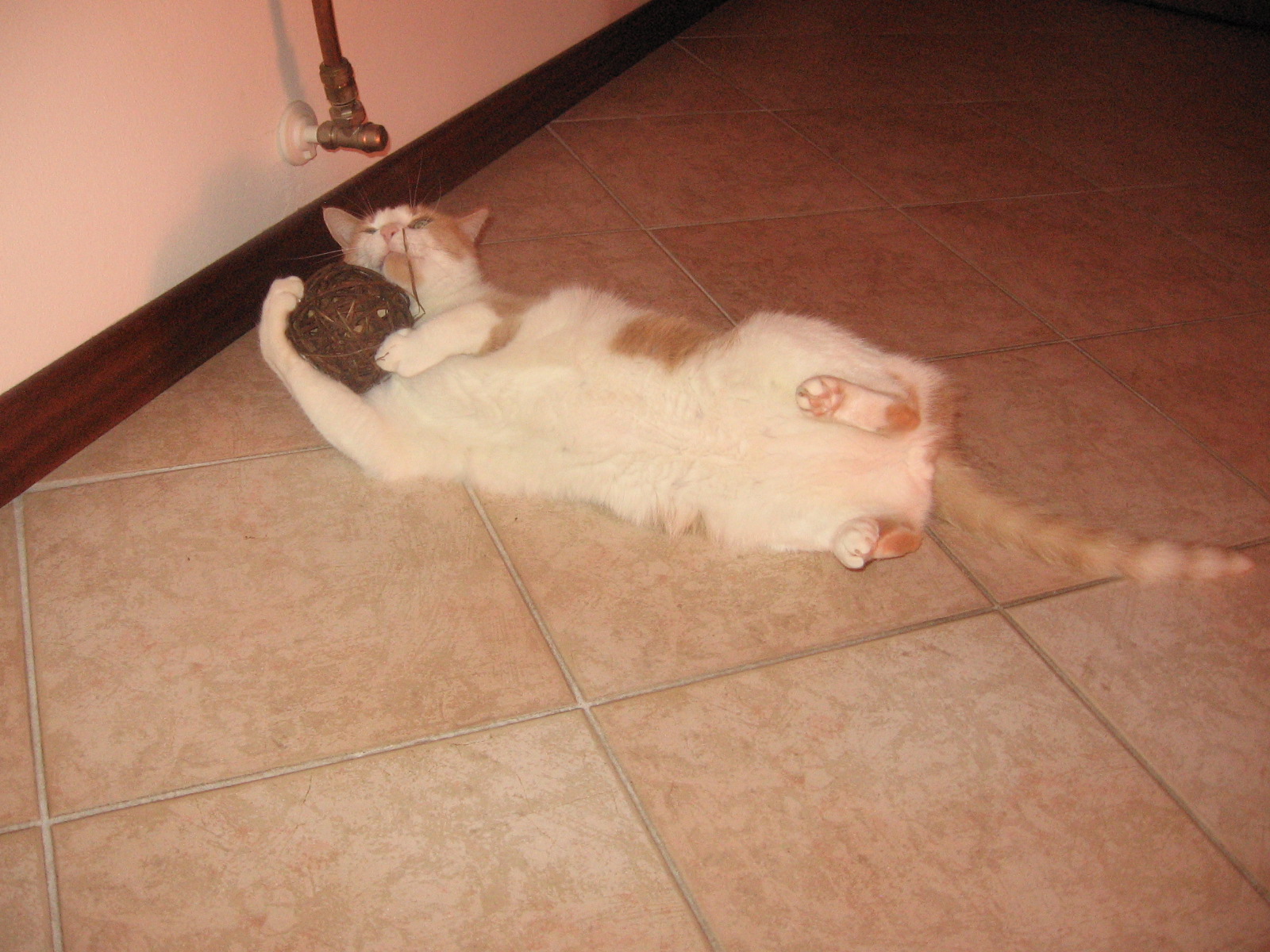 La pallina è mia!Bellissimo!I gatti rossi sono la mia passione!