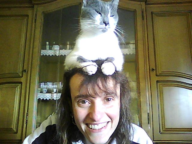 Luna spesso mette le sue zampette sulla mia testa...e tenta di dormire!