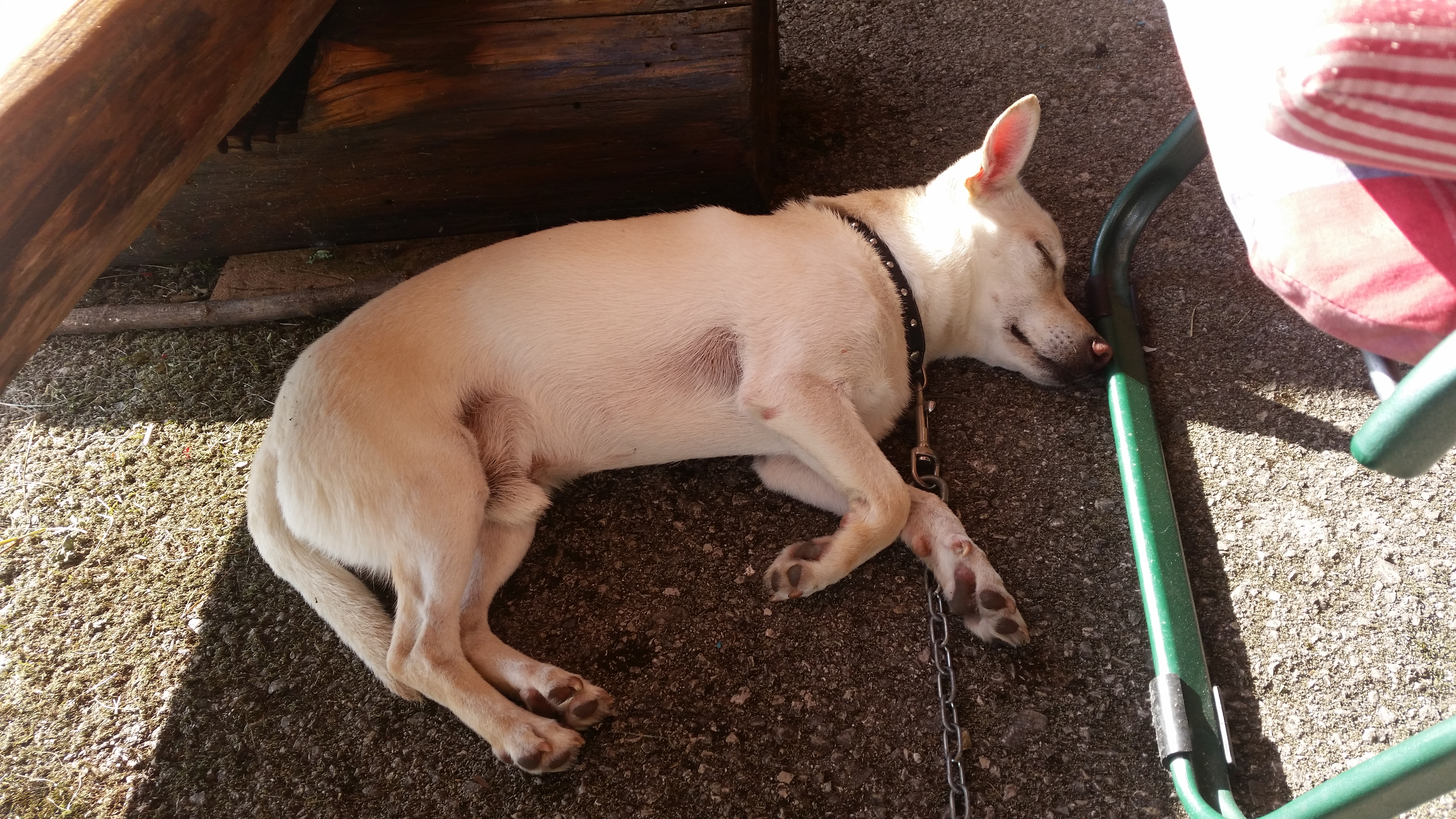 DescrizioneDopo una passeggiata in montagna per 2 ore, Lucky dorme e Pluto guarda il papà che affetta il salame!