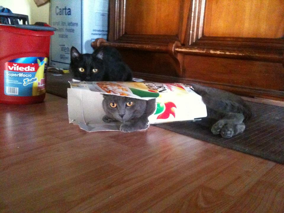 DescrizioneAres pensa di essere ancora un cucciolo e cerca di entrare in ogni scatola anche se queste sono troppo piccole. Il risultato si vede!!