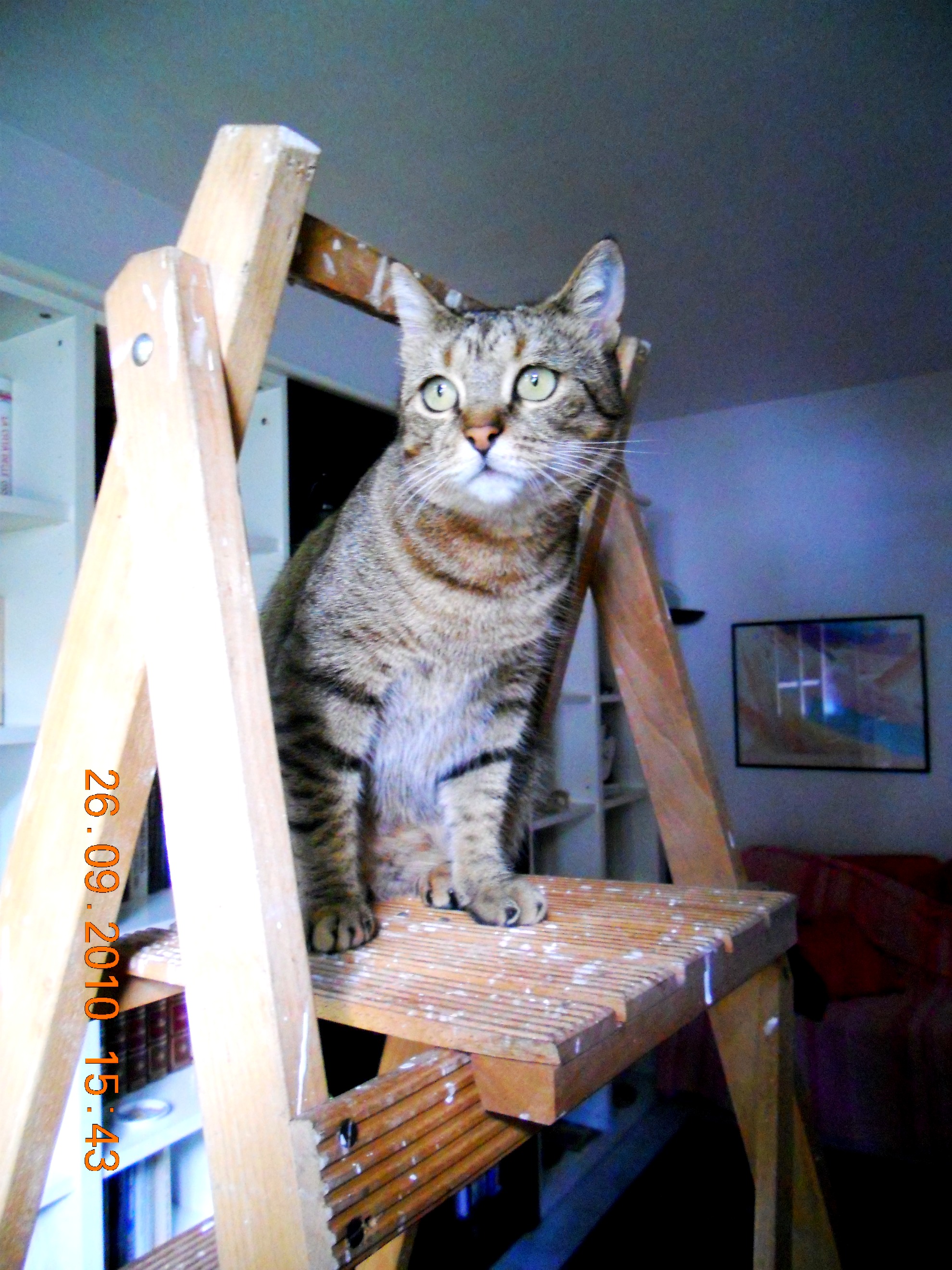 DescrizioneTigra approfitta dello scaleo davanti alla finestra per salirci e guardare fuori.
